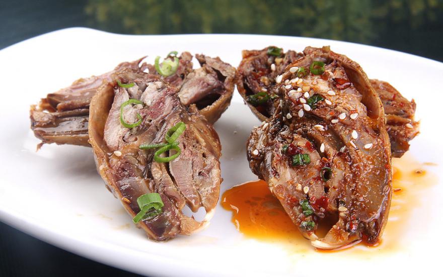 麻辣兔头是四川成都特色名小吃之一,鲜香味美,口感极佳。制作原料主要有速冻鲜兔头、干辣椒、姜块、精炼油等。吃兔头很讲章法,如同上海人吃醉虾,虾肉吃掉,虾壳还不破。啃兔头,需要充分调动口、唇、舌的各种功能,才能品出兔头滋味的妙处来。吃的是麻辣口味,红油汪汪,上面能看见芝麻和花椒末,已经卤得熟透,骨脱肉滑。